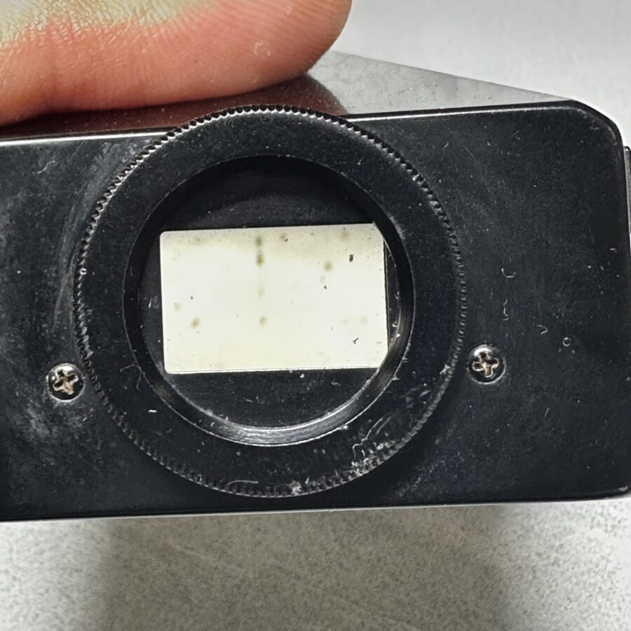 F-1は長年の使用や保管環境の影響で、ファインダー内部にチリや曇りが発生していることがよくあります。また、プリズムの劣化による黒い影やムラが見られることもあります。