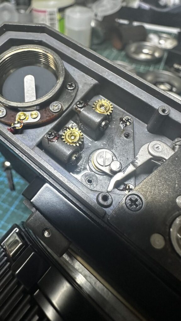 古いフィルムカメラの修理をしていると言い方がわるいですが、このまま修理しないでお返ししても「きっとお客様は気づかない箇所」がたくさんでてきます。少なくとも保証期間内は影響がでないだろうと思われる箇所もあります。
