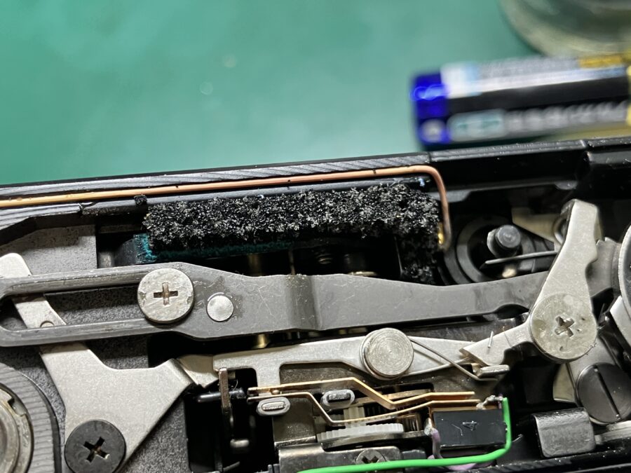 フィルム室内も、モルトの残りや細かいゴミが残っていることがあるため、分解清掃のついでに整えておくと安心です。整備後は見た目も手触りもすっきりした印象になります。