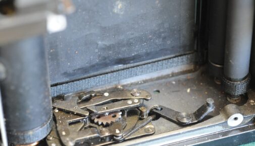 巻き上げの重さや引っかかりが出ることがあります。これはカムの汚れや摩耗、油切れが原因で、シャッター系の不調とあわせて現れることが多い症状です。全体を整えることで改善する場合がほとんどです。