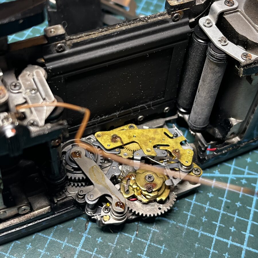 古いフィルムカメラの修理をしていると言い方がわるいですが、このまま修理しないでお返ししても「きっとお客様は気づかない箇所」がたくさんでてきます。少なくとも保証期間内は影響がでないだろうと思われる箇所もあります。