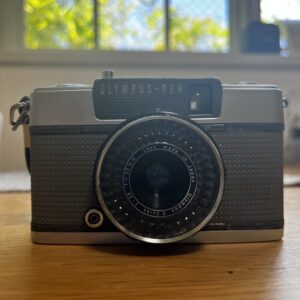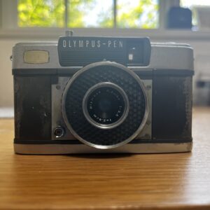 シリーズの中でも高級機にあたるハーフサイズカメラです。金属製の精密なシャッターと、CdS式の露出計を内蔵しており、シャッター羽根の粘りや露出計の断線、接点の酸化がよく見られます。シャッターユニットを分解清掃し、羽根の動きを滑らかに戻すとともに、露出計回路の導通確認と清掃を行います。ファインダーや距離計の汚れ除去も合わせて行い、PENらしい軽快な操作感を取り戻します。